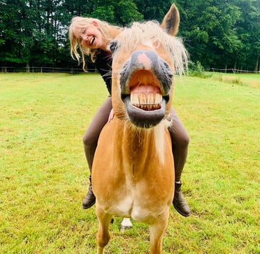 Mein bescheuertes Haflinger-Stütchen habe ich mit 9 Jahren quasi roh von einer Wiese geholt und habe sie dann selber eingeritten und ausgebildet. Alice musste einfach mit, als ich sie kennen lernte.