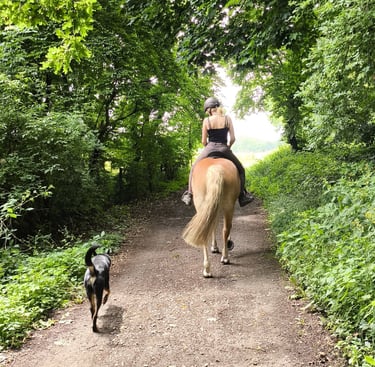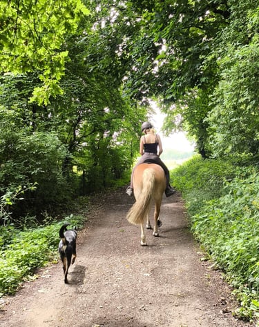 Zwar kein Hund, aber gehört auch dazu. Seit ich denken kann, werde ich von Pferden umgeben. Mit ca. 6 Jahren fing ich mit dem Reiten an.