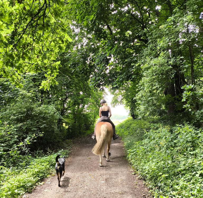 Zwar kein Hund, aber gehört auch dazu. Seit ich denken kann, werde ich von Pferden umgeben. Mit ca. 6 Jahren fing ich mit dem Reiten an.