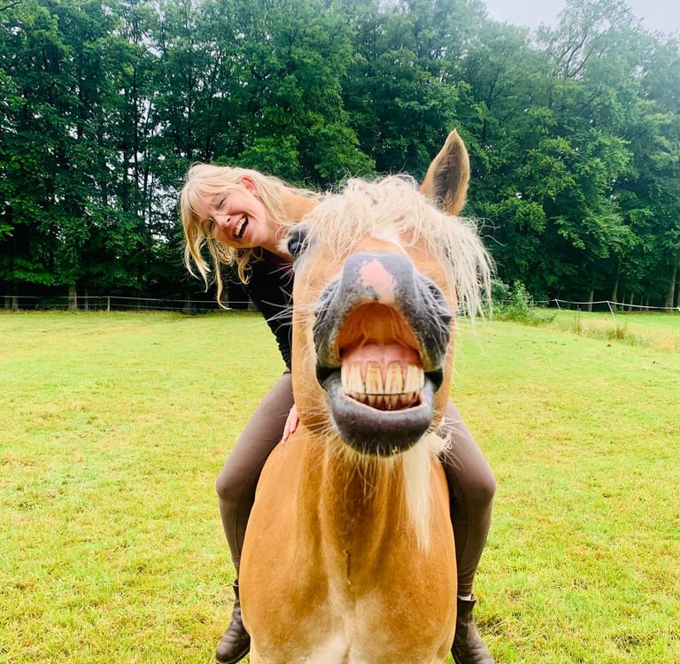 Heute verbringe ich mit Alice am liebsten unsere gemeinsame Zeit im Grünen und sie wird als reines Freizeitpferd geritten.